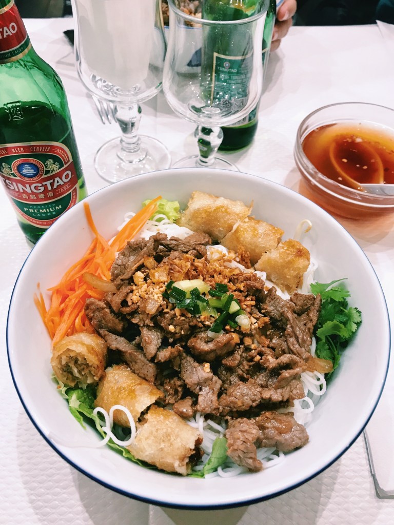 On y mange quoi ? Bo-bun et uniquement des bo-bun ! Jamais trouvé un meilleur bo-bun que celui ci. Le restaurant ne paye pas de mine mais n’ayez pas peur d’y entrer, c’est un délice !